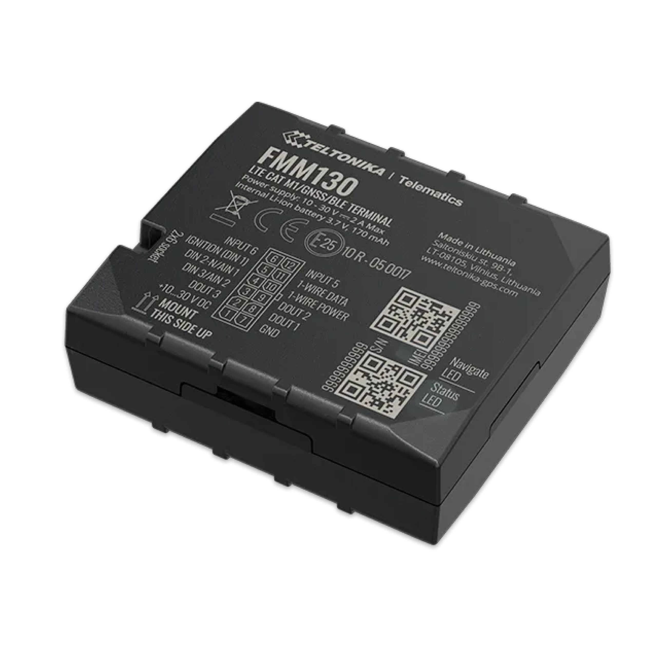 FMM130 es un terminal de seguimiento en tiempo real pequeño y profesional con conectividad GNSS y LTE CAT-M1 / NB -IoT / GSM y batería de respaldo. Dispositivo equipado con módulos GNSS / Bluetooth y LTE CAT-M1 / NB -IoT con respaldo a la red 2G, antenas internas GNSS y LTE, entradas configurables digitales, analógicas y digitales, entradas negativas, entradas de impulsos. Es perfectamente adecuado para aplicaciones donde se necesita la adquisición de la ubicación de objetos remotos: gestión de flotas, empresas de alquiler de automóviles, empresas de taxis, transporte público, empresas de logística, automóviles personales, etc.